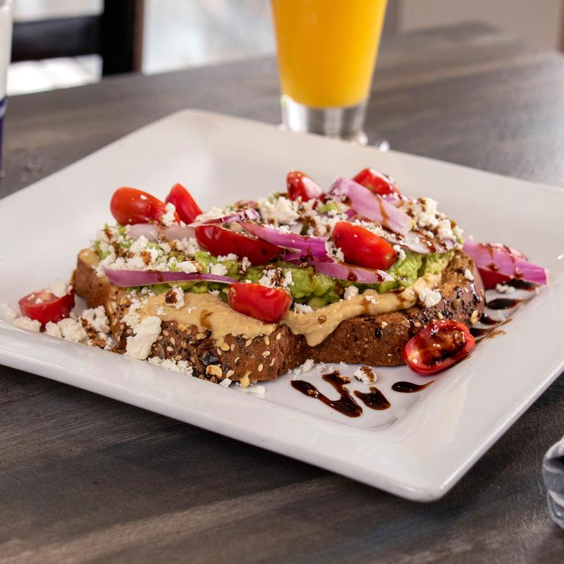 Multi-grain wheat bread, traditional hummus, mashed avocado, feta, tomato, and red onion. Topped with balsamic glaze. Add: (2) Eggs +$2.95 | Combo +$4.95